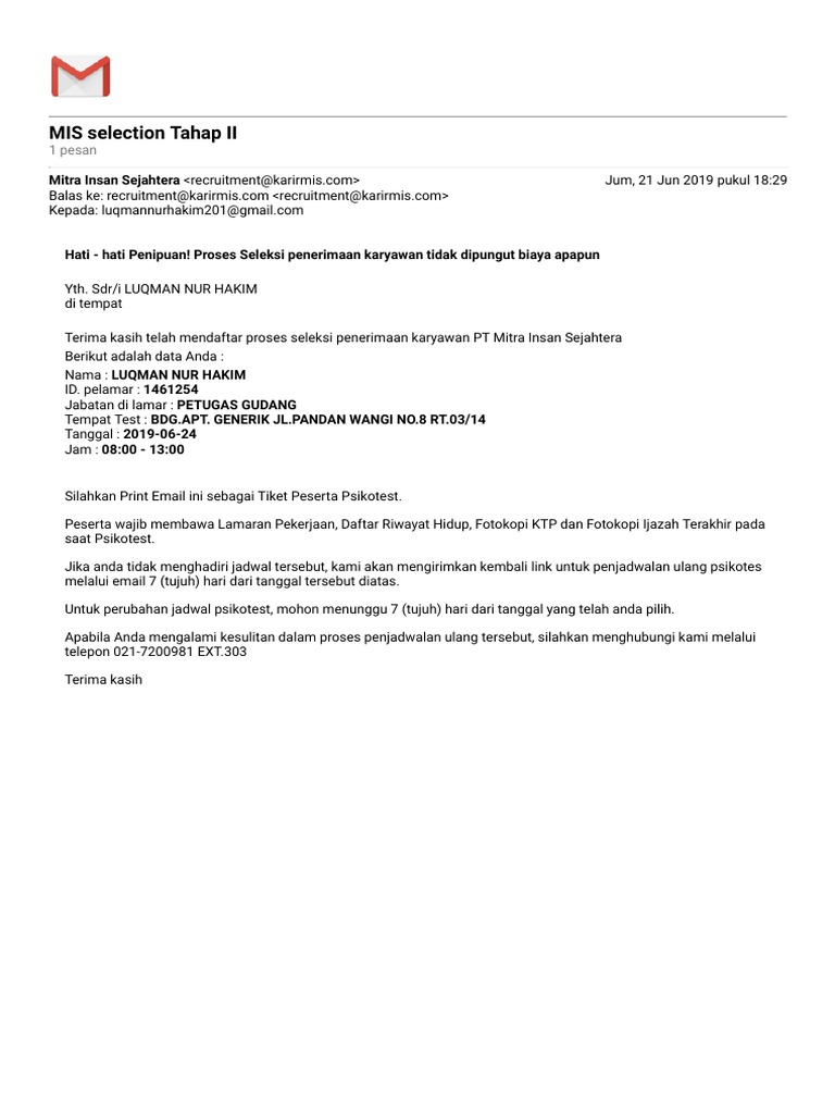 Apakah Sudah Ada Pengumuman Hasil Psikotes Pt Pharos : Jangan Sampai Ketipu Inilah Ciri Ciri Undangan Wawancara Kerja Palsu Cermati Com - Pharos indonesia mengundang sdr untuk psikotest hari rabu jam 08.00 trs gw searching disini, cari informasi yg serupa.. Saat ini tim seleksi sudah memasuki tahap. Hasil dari psikotes berperan besar untuk menentukan apakah kamu cocok untuk diterima bekerja di perusahaan tersebut atau tidak. Persiapan apa saja yang anda lakukan dalam menghadapi tes tersebut? Silahkan unduh langsung di link berikut ini pengumuman penetapan peserta seleksi penerimaan pegawai baru.docx> untuk hasil psikotes dijadwalkan tanggal 23 februari 2010. Menjalani tes psikotes kerja jadi salah satu tahapan dari proses rekrutmen di suatu perusahaan.